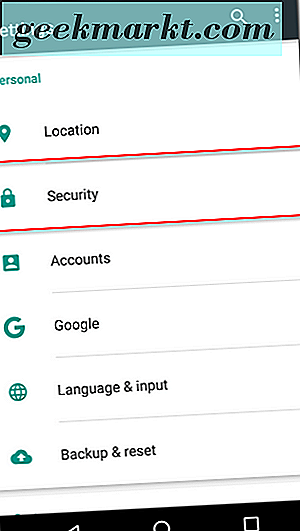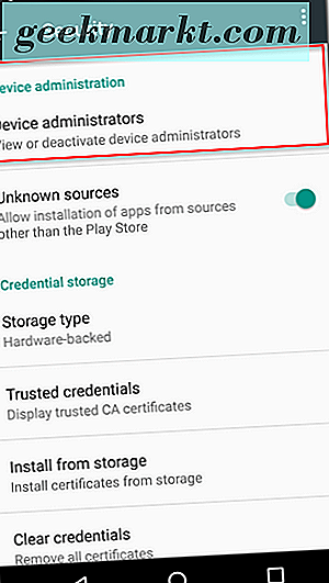 Selecteer Apparaatbeheerders in Beveiliging onder Apparaatbeheer .