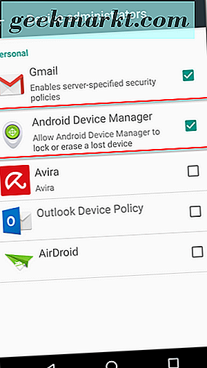 Zorg ervoor dat Android-apparaatbeheer is aangevinkt.