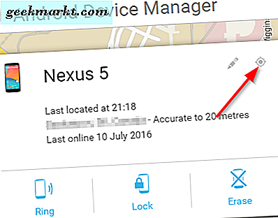 Met Android-apparaatbeheer kunt u uw apparaat vinden zoals eerder vermeld. Om dit te doen, drukt u op het locatiepictogram dat wordt weergegeven in de onderstaande schermafbeelding.