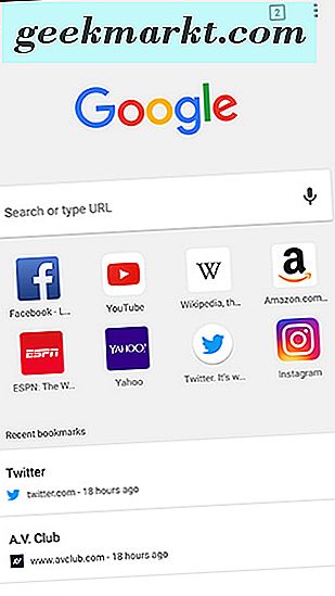 Als het gaat om de Android-interface van Chrome, zult u het waarschijnlijk schoon en vertrouwd vinden als u de app op een traditionele computer hebt gebruikt. Het scherm "nieuwe tab" is bijvoorbeeld bijna identiek aan het uiterlijk op desktop Chrome, met het Google-logo, een zoekvak met optionele opdrachten en acht snelkoppelingen die uw meest bezochte pagina's weergeven (gesynchroniseerd van zowel uw mobiele als desktopversie) van Chrome). Op Android zijn er echter enkele aanvullende functies in de app. U kunt verder in de lijst bladeren om recente bladwijzers weer te geven, gesynchroniseerd vanuit alle exemplaren van Chrome waarbij u bent aangemeld. Hieronder een lijst van voorgestelde artikelen die de feed bevolken, met alles van technologie tot politiek tot entertainmentnieuws en denkende stukken die de ruimte onder deze bladwijzers opvullen. Deze zijn rechtstreeks aangepast aan uw persoonlijke smaak en sinds de functie is toegevoegd, is deze aanzienlijk verbeterd.