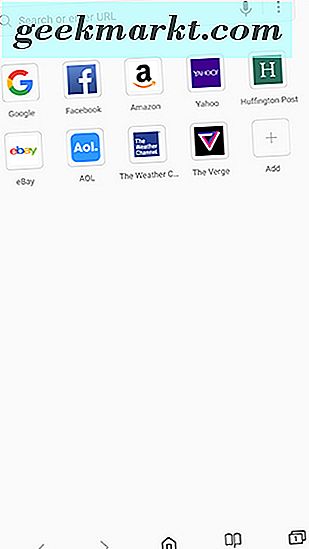 Hoewel dit niet meteen duidelijk zal worden, is de browser van Samsung gebaseerd op Chromium, de open-sourcebasis die Google gebruikt om Chrome te bouwen. Dit betekent dat de prestaties ongelooflijk lijken op wat u van Chrome mag verwachten en legt echt de nadruk op de kleine details die Samsung toevoegt aan de browser. Het uiterlijk van de app bevindt zich bijvoorbeeld ergens tussen Chrome en Safari op iOS en stemt overeen met Samsung's algemene esthetische stijl in 2018. Kleine details komen hier uit, zoals het scherm 'Nieuw tabblad' met een reeks snelle bladwijzers en het vermogen om een website toe te voegen als snelkoppeling voor snelle toegang. Net als Chrome kunt u met deze pagina ook op het web zoeken, stemgestuurd zoeken en heeft u rechtstreeks vanuit het hoofdmenu toegang tot uw startpagina en bladwijzerlijst. Vanzelfsprekend vindt u hier geen Google-logo, maar de pagina voelt en functioneert redelijk op dezelfde manier als de pagina 'Nieuw tabblad' in Chrome, en u zult zich hier niet misstaan.