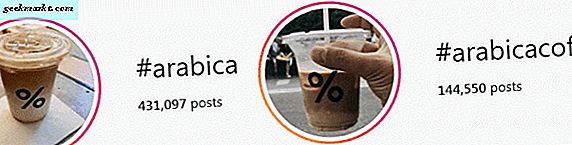 Met iets meer dan 431.000 foto's zou #arabica een goede keuze zijn - relevant maar niet te concurrerend. De hashtag #arabicacoffee is ook een goede optie, vooral omdat er op dit moment minder dan 150.000 foto's worden gebruikt. Maar omdat mensen eerder naar #arabica zoeken dan #arabicacoffee, kan het beter zijn om met de eerste te gaan werken. Je zou hetzelfde doen met elk ander type koffie.