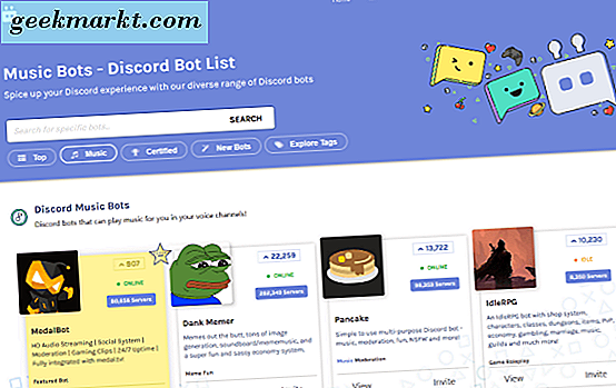 Het vinden van een Discord-bot is het gemakkelijkste deel van het proces. Sites zoals Discord Bot List of Carbonitex zijn twee voorbeelden van botrepository's.
