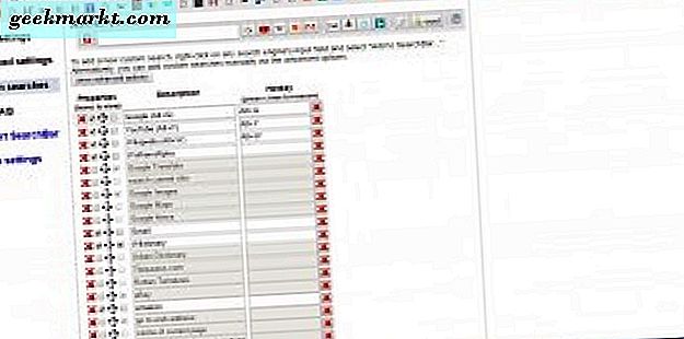 U kunt nog veel meer zoekmachine-knoppen toevoegen aan de zoekbalk door op de knop Opties (tandwielpictogram) te drukken. Klik vervolgens op Aangepaste zoekopdrachten om de onderstaande pagina te openen. Er staan een paar zoekmachines vermeld die niet zijn geselecteerd. Klik daarom op niet-geselecteerde selectievakjes om hun knoppen aan de zoekbalk toe te voegen.