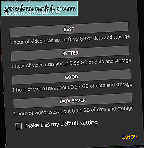 Over het algemeen zult u merken dat de downloadopties voor Prime-inhoud flexibel genoeg zijn om goed te werken voor de meeste streaming-inhoud online, hoewel deze niet zo algemeen beschikbaar is als wanneer u een film zou huren of kopen via Amazon's eigen marktplaats. Ten slotte moeten we vermelden dat u de opslaginstellingen voor uw download (tussen uw interne opslag en uw externe microSD-kaarten) in uw instellingenmenu onder "Opslag" kunt aanpassen.