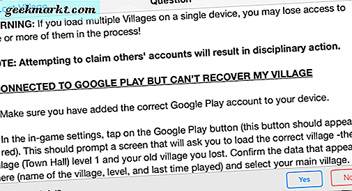 Herstel de game via Google Play door op Google Play te tikken in uw game-instellingen en het juiste dorp te selecteren.