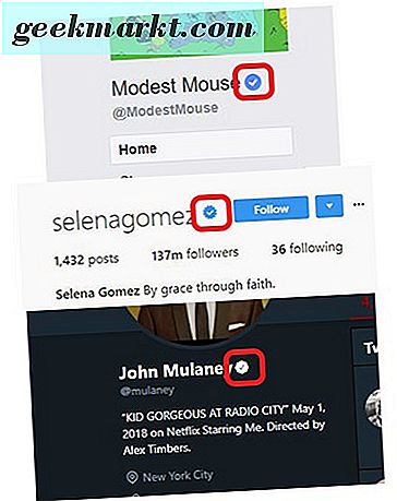 Op sociale platforms zoals Twitter, Instagram en Facebook hebben bepaalde gebruikers blauwe vinkjes naast hun naam op profielen. Of het nu gaat om een beroemdheid, een band of een nieuwsnetwerk, deze platforms plaatsen een blauw vinkje naast specifieke pagina's om te bewijzen dat de accounts geverifieerd en echt zijn. Op Twitter wordt dit eenvoudigweg "verificatie" genoemd; gebruikers met een vinkje worden eenvoudigweg aangeduid als geverifieerd. Op Facebook en Instagram (eigendom van Facebook) wordt dit nog steeds verificatie genoemd, maar de blauwe vinkjes worden 'verificatiebadges' genoemd. Alle drie hebben hetzelfde doel: gebruikers laten zien dat het account dat u bekijkt, is echte en geen fanpagina of parodie.