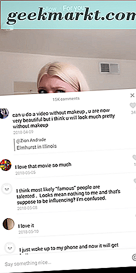 We hebben hier een heel artikel om uit te zoeken hoe je meer fans kunt krijgen in Musical.ly, maar de korte versie is dit: als je eenmaal content hebt die niet alleen respectabel is, maar je talenten ook op de best mogelijke manier laat zien, je kunt de volgfunctie van de app gebruiken om opgemerkt te worden door nieuwe gebruikers. We stellen voor om tien heel sterke Musical.ly-clips te maken; maak ze uw beste werk mogelijk, en wees niet bang om iets nieuws te proberen of ga uit de doos. Zodra je dat hebt gedaan, kun je beginnen met het gebruik van de hoofdpagina van de app om nieuwe gebruikers te vinden. Ververs je feed en ga op zoek naar nieuwe clips die zijn gepost van populaire en mogelijk al gekroonde Musical.ly-gebruikers. Bekijk vervolgens de opmerkingen over die video's om accounts te vinden van mensen die genieten van de inhoud van die gebruiker.