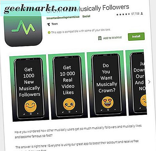 De langere uitleg is enigszins een waarschuwing. Die sites en apps die kronen op de markt brengen, of vertellen dat je gratis kronen kunt krijgen door gewoon hun systeem te gebruiken om toegang te krijgen tot gloednieuwe likes en volgers, vragen bijna altijd om je inloggegevens, waardoor gebruikers op Musical.ly hun e-mail overhandigen en wachtwoord in ruil voor een kroon. Als u uw accountgegevens aan een van deze nepdiensten verstrekt, kan er veel misgaan. In het beste geval kan het worden beschouwd als een overtreding van de servicevoorwaarden van Musical.ly, waardoor uw account wordt geannuleerd of gesloten door Musical.ly, waardoor uw verzameling video's wordt afgesloten en u de toegang verliest tot alles wat u niet handmatig hebt gebackupt.