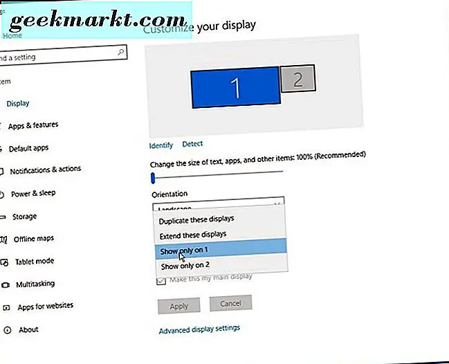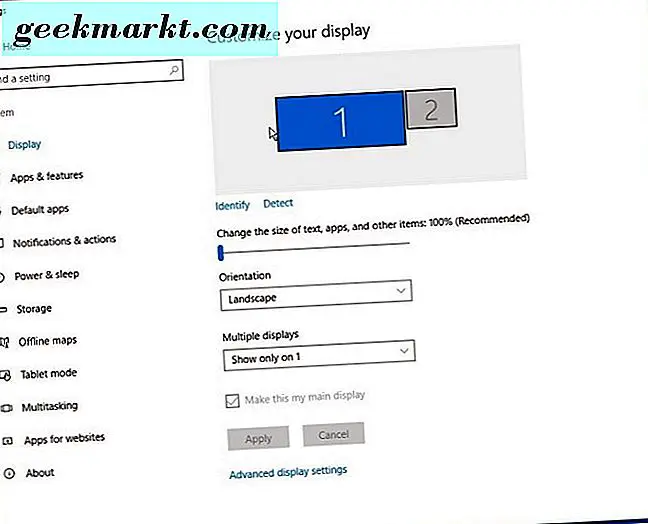 Als u op de knop "Identificeren" klikt, kunt u bepalen welke monitor is geselecteerd en welke monitor de primaire weergave is. In het ideale geval wilt u dat de monitornummers fysiek overeenkomen met de lay-out in de instellingen. Als dit niet het geval is, schakelt u ze eenvoudigweg in met behulp van het selectievakje 'Mijn hoofdweergave maken'.