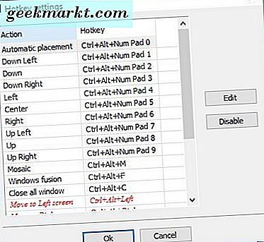 Open een venster om te klikken en druk vervolgens op een van de pijltoetsen op het virtuele numerieke toetsenblok om het venster aan de rechter-, linker-, boven- of onderkant van het bureaublad te plaatsen. Zodoende kun je de vensters half en kwartieren en ze op het bureaublad rangschikken. De software heeft ook sneltoetsen en u kunt een lijst met sneltoetsen hieronder openen door met de rechtermuisknop op het pictogram van het WinSplit Revolution-systeemvak te klikken en sneltoetsinstellingen te selecteren.