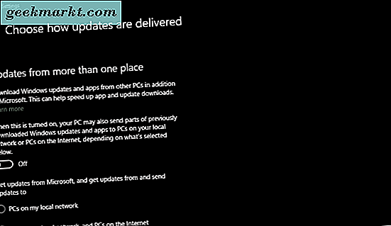 - Schakel 'Updates van meer dan één plaats' uit. Dit maakt gebruik van een distributie-arrangement in BitTorrent-stijl om Windows Updates te delen tussen netwerkcomputers en andere op internet. Het protocol kan grondstofintensief zijn en ertoe leiden dat netsvcs overwerkt raken.