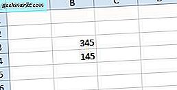 De meeste Excel-gebruikers moeten echter getallen aftrekken die zijn ingevoerd in spreadsheetkolommen en rijen. Als u celwaarden wilt aftrekken, moet u in plaats hiervan de rij- en kolomverwijzingen in de formule opnemen. Voer bijvoorbeeld de waarden '345' en '145' in de cellen B3 en B4 in een lege Excel-spreadsheet in zoals in de onderstaande afbeelding.