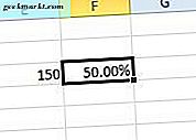 Als u een percentage, zoals 50%, van een getal wilt aftrekken, moet u de waarde in een cel met een percentageindeling invoeren. Vervolgens kunt u een formule toevoegen die het percentage van een getal in een andere cel aftrekt. Voer bijvoorbeeld de waarde '150' in cel E3 in. U moet cel F3 converteren naar een percentageindeling door met de rechtermuisknop op de cel te klikken en Cellen opmaken > Getal> Percentage > OK te selecteren . Voer '50' in F3 in, die dan in percentage zal zijn, zoals hieronder getoond.