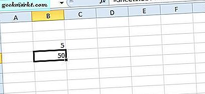 Klik nu op B4 in Blad2 om de formule aan die cel toe te voegen. Voer de formule '= Sheet1! B14-Sheet2! B3' in de Excel-functiebalk in en druk op Return. Cel B4 trekt nu 5 in Blad2's B3 van de waarde van B14 in Blad1. De cel retourneert een waarde van, zoals u waarschijnlijk al vermoedde, 50.
