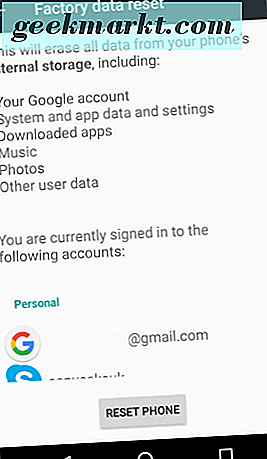 Zoals vermeld, is een reset van de fabrieksgegevens de laatste stap. Hopelijk heeft u Google Sync ingeschakeld en hebt u cloud-back-ups van al uw gegevens. Als u dit doet, downloadt Google automatisch uw gegevens wanneer u de volgende keer verbinding maakt met een gegevensnetwerk.