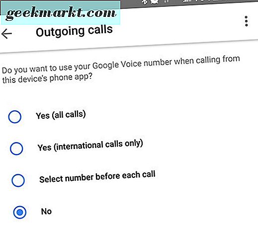 De eerste service waar u naar moet kijken voor een secundair spoofnummer is, niet verwonderlijk, Google Voice. Voice is in veel opzichten de perfecte service voor iemand die op zoek is naar een secundair, web-gebaseerd nummer dat voor de meeste functies geen cent kost. Google biedt een desktop- en mobiele webclient, samen met toegewijde clients voor zowel iOS als Android die er geweldig uitzien en die regelmatig worden bijgewerkt na de wedergeboorte van Voice begin 2017. Voice stelt u in staat uw toegewezen secundaire nummer te gebruiken om oproepen door te schakelen naar uw primaire nummer, allemaal terwijl ze gratis bellen vanuit het toegewezen parodie nummer in de Verenigde Staten. Uw toegewezen nummer kan ook worden aangepast, zodat u een specifiek netnummer in de VS kunt selecteren, of een bepaald laatste viercijferig nummer kunt typen om het gemakkelijk te onthouden te maken. Uw nummer kan zowel telefonisch als per sms worden benaderd, net als een standaard mobiele telefoon, en uw oproeplog, sms en voicemail kunnen allemaal online worden georganiseerd op elke computer. Het is een fantastische service, vooral gratis en het komt als onze best aanbevolen service voor iedereen die op zoek is naar een permanent spoofnummer.