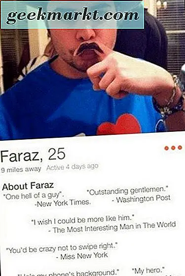 Om je op weg te helpen, zijn hier een paar grappige dating-app-bios die ik vooral leuk vind. Het gerucht gaat dat sommige van deze nep zijn, maar ze zijn grappig, dus wat maakt het uit?