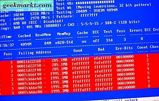 Als MemTest86 + fouten vindt, wissel dan RAM-sticks om tussen slots en voer de test opnieuw uit. Als MemTest86 + nog steeds fouten vindt, moet u bepalen of het RAM- of moederbordsleuf is. Als de fout met het RAM-geheugen meebeweegt, kan deze defect zijn. Als de fouten op dezelfde plaats blijven, kan dit het moederbord zijn.